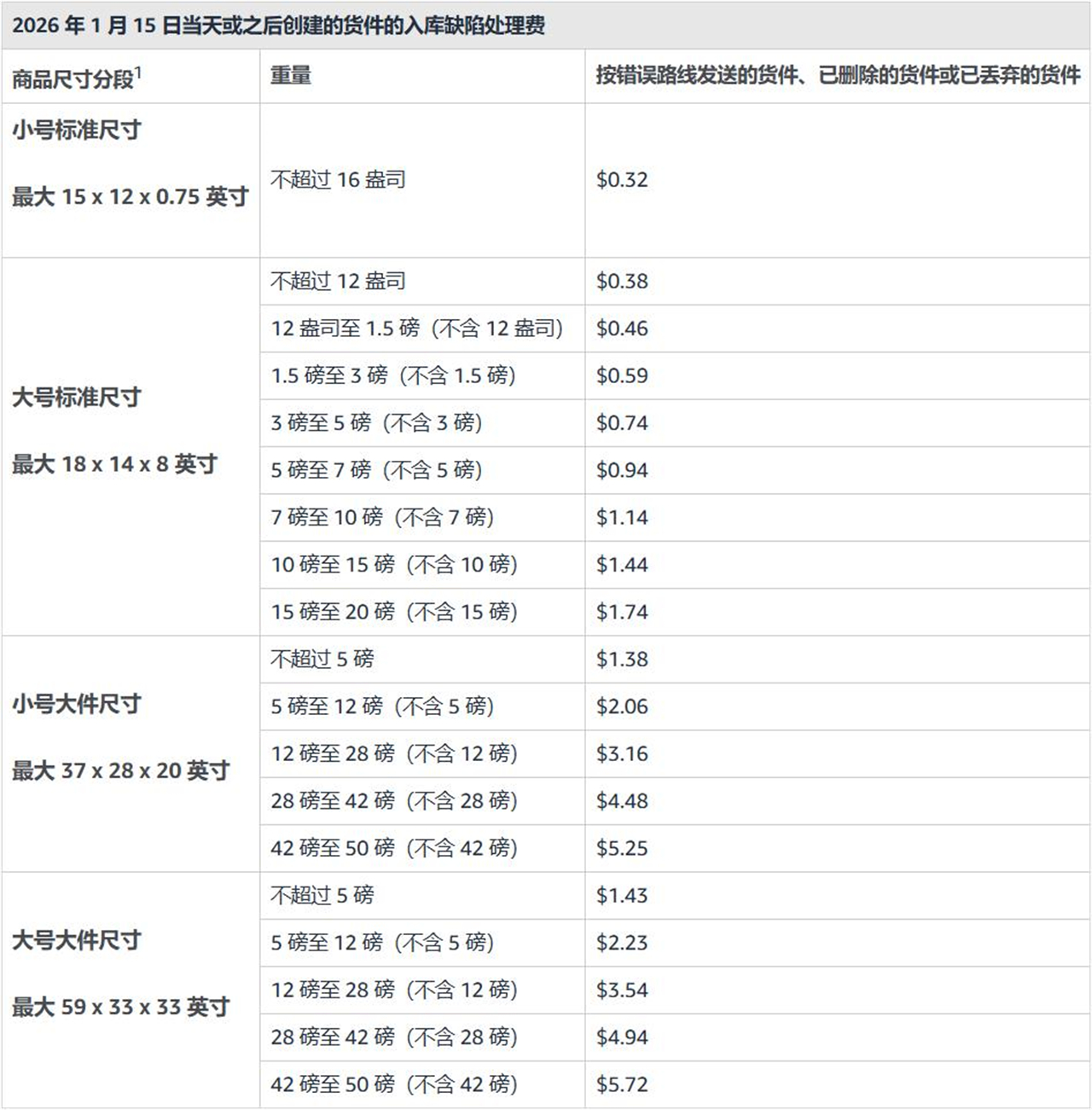 对于未送达货件、延迟(丢弃)或配送至错误地点的货件,亚马逊将统一收取平均每件商品60美元的入库缺陷处理费。
