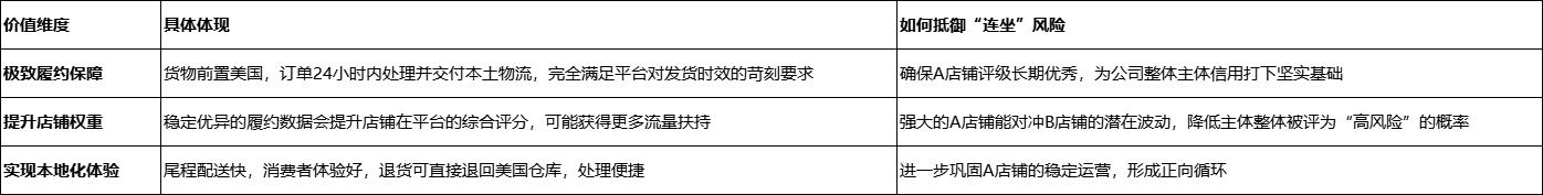 在上述策略中,美国海外仓是打造“压舱石”店铺(A店铺)不可或缺的基础设施,其价值体现在: