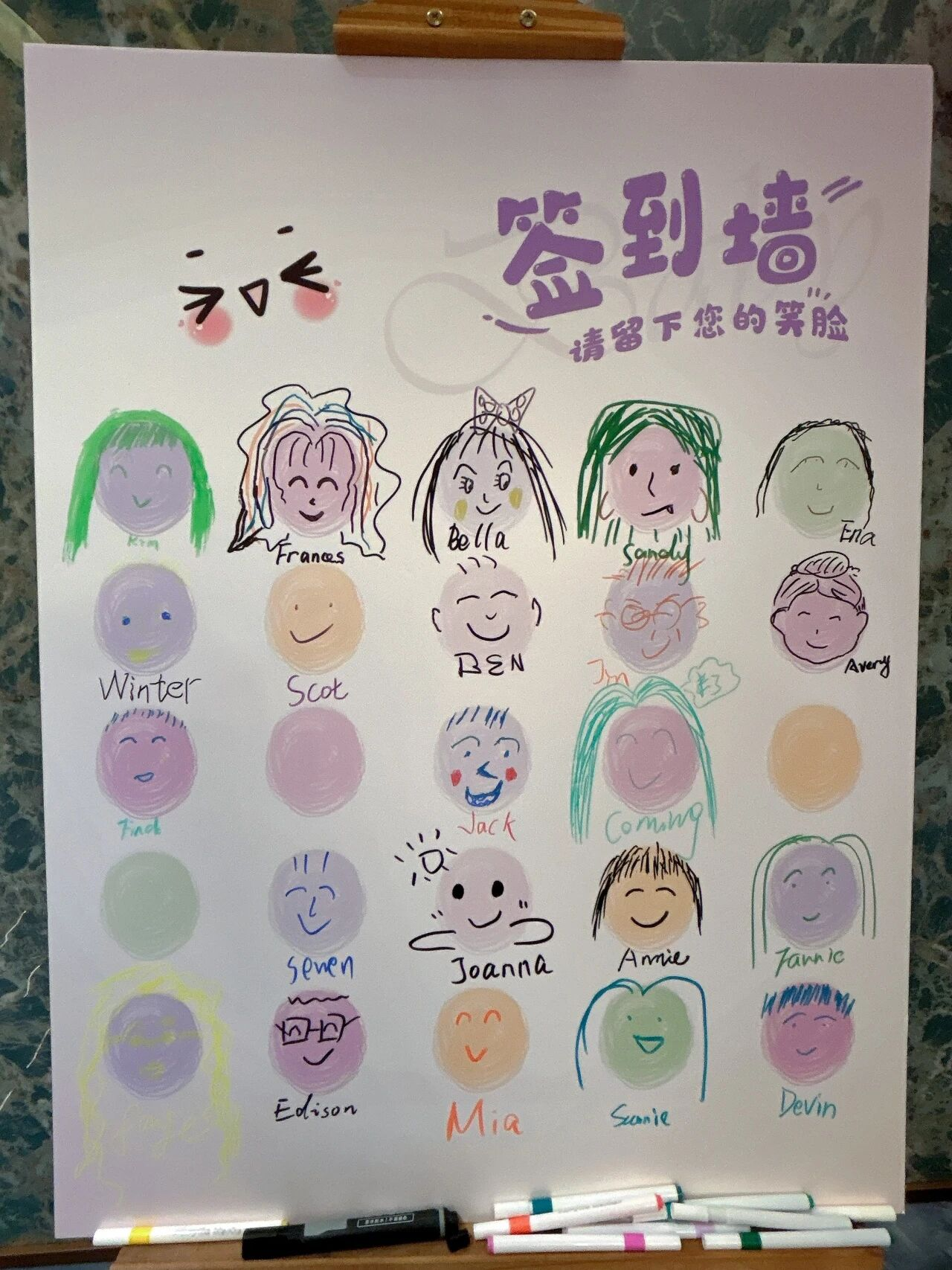 活动伊始,充满童趣的红领巾和创意十足的笑脸签到墙,瞬间拉近了彼此的距离。大家纷纷在签到墙上画下自己的画像,签下名字,用最轻松的方式开启了这场特别的聚会。